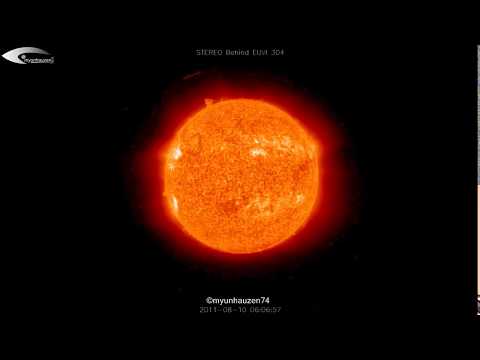 Review is conducted using the satellite SOHO STEREO instruments Behind EUVI 195EUVI 171 EUVI 284 and EUVI 305. Step one is observing the week of June to October2011. You can see that the object moves from right to left, stops and starts moving in the opposite direction. If we make the observation, we can see that the UFO is moving in the amplitude of the pendulum.