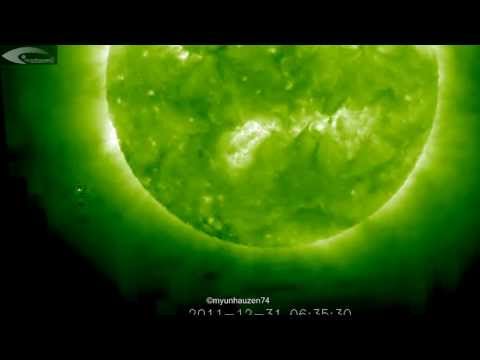 UFO activity in the orbit of the Sun - Review of December 31, 2011 (SOHO STEREO Ahead EUVI 195)