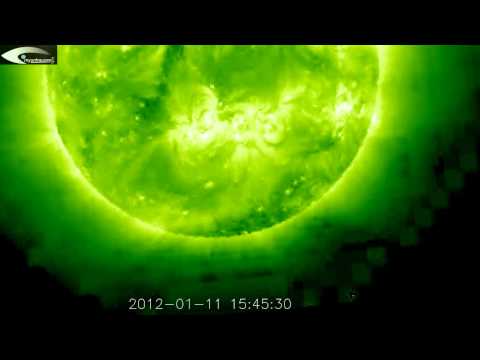 UFO in orbit of the Sun - Review for January 11, 2012 (SOHO STEREO Ahead EUVI 195)