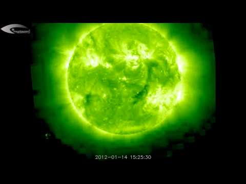 UFO on the solar orbit - Review of January 14, 2012 (SOHO STEREO Ahead EUVI 195)