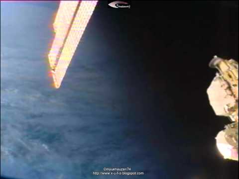 After the appearances of unidentified objects, NASA has cut the broadcast. In the video, the used filter and zoom. As you will see the use of filters and zoom - it's not a cloud! The clouds have a dark lighting when leaving the ISS from the shadow of the Earth. This is a real physical objects! It's a UFO!